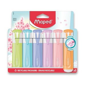 Zvýrazňovač vysoké kvality se seříznutým hrotem v unikátním designu, v šesti trendy pastelových barvách Univerzální inkoust na vodní bázi pro všechny typy papíru Nevysychá ani při dlouhé době otevření …