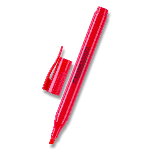 Zvýrazňovač se dvěma hroty: širokým seříznutým hrotem a velmi tenkým kulatým hrotem.