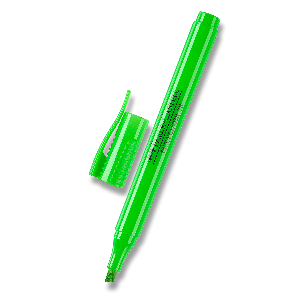 Plochý zvýrazňovač, tělo v tradiční tmavě zelené barvě.