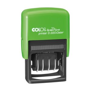 Samobarvicí datumové razítko v plastovém pouzdře z řady COLOP Printer S 200 v ekologické variantě Green Line Podíl recyklovaného plastu 80%, obal výrobku z přírodního kartonu Standardně černý …