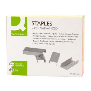 Kovové pozinkované drátky Q-Connect Zaručují hladký chod sešívačky Prošije 25 listů Typ 24/6 Balení: 1000 ks