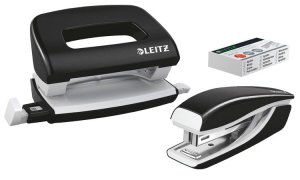 Set mini sešívačky a děrovačky Leitz WOW Mini set v moderních barvách.
