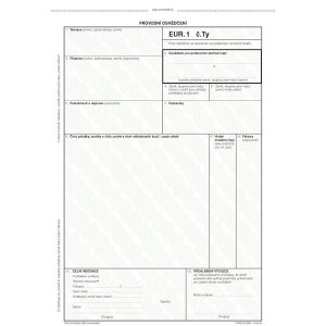 Tiskopis E U R 1 (samopropis) 1+2 SL Průvodní osvědčení pro vývoz zboží – oficiální formulář potřebný při exportu, určený k doložení původu zboží Složka 3 listy Formát: A4 Provedení: lepená složka Samopropisovací …