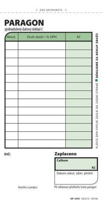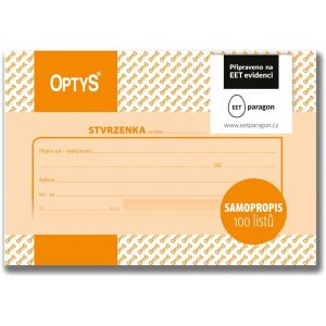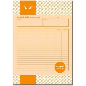 - Samopropisovací. - Nečíslovaný. - Formát A5 na šířku. - Blok obsahuje 100 listů odtržitelných perforací, se zakládacím děrováním.