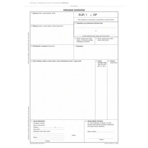 Tiskopis E U R 1 (samopropis) 1+2 SL Průvodní osvědčení pro vývoz zboží – oficiální formulář potřebný při exportu, určený k doložení původu zboží Složka 3 listy Formát: A4 Provedení: lepená složka Samopropisovací …