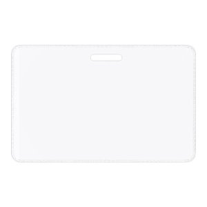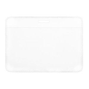 Jmenovka z čirého tvrzeného PVC, bez klipu Včetně papírového štítku Dlouhý průřez slouží k uchycení na držák průkazů či pomocí textilní šňůry Otevřené pouzdro Rozměry: 9,0 x 6,0 cm (š x v)