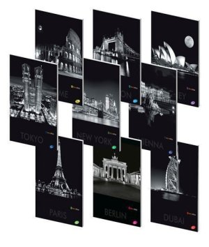Působivé černobílé fotografie světových metropolí tvoří kolekci obalů kvalitních sešitů nejen pro studenty.