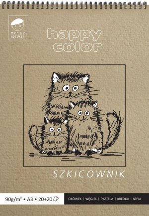 Spirálový skicák s tvrdými deskami obsahuje dva druhy papírů – jemně zrnitý přírodně bílý s gramáží 90g/m2 a lehce drsnější okrový papír o gramáži 80g/m2.