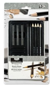 Sada obsahuje: 6 x grafitová hranatá tuha (HB, B, 2B, 4B, 6B, 8B), 4 x klasická grafitová tužka (HB, 2B, 4B, 6B), 2 x grafitová tužka v laku (8B, 6B), 1 x plechový obal /114 mm x 191 mm x 13 mm/