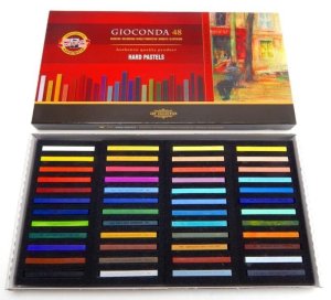 48 ks souprava uměleckých tvrdých hranatých pastelů o rozměru 7 x 7 x 75 mm zabalené v dřevěné kazetě.