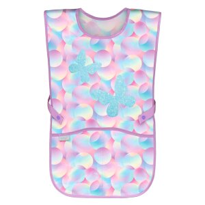 • Dětská zástěra na výtvarnou výchovu, pracovní činnosti a další kroužky. • V dolní části zástěry jsou dvě kapsy. • Vyrobeno z omyvatelného materiálu.