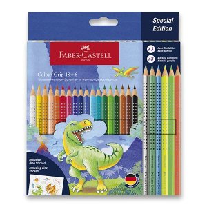Souprava 24 ks kvalitních dřevěných pastelek colour grip dinosaurus (18+6) trojúhelníkového tvaru s tématikou dinosaura.