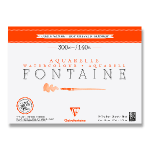 Akvarelový blok Clairefontaine Fontaine Hot Pressed s rozměry 23 x 31 cm má 100% bavlněný papír, který je za tepla lisovaný.