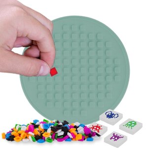 Balíček přibližně 50 kusů malých silikonových pixelů v bílé barvě.