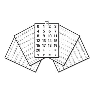 Sada písmen, slabik a číslic pro výuku čtení pro žáky první třídy základní školy.