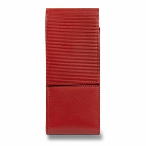 Pouzdro z měkké červené nappa kůže s vyraženými proužky na zavírací klopě, pro 3 pera.
