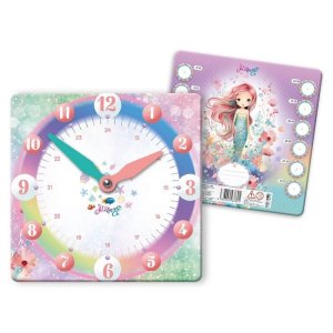 Papírové dětské hodiny na výuku Mermaid. • obsahují ciferník se zvýrazněnými čísly 3, 6, 9 a 12 také čísla od 1 po 12 a minutové dělení s pohyblivými ručičkami • zadní strana hodinek …
