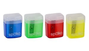 Školní ořezávátko s praktickým víkem a kontejnerem, v barevném mixu.