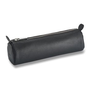 Kulaté černé kožené pouzdro Lamy s vnitřní textilní podšívkou.