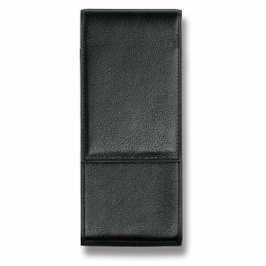 Pouzdro z měkké černé nappa kůže s vyraženými proužky na zavírací klopě, pro 2 pera.