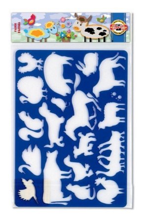 Šablona plastová na kreslení – FARM/FARMA (motiv “domácí zvířata“), rozměry 265 x 187 mm, tl. 2 mm; uložená v PP sáčku se závěsem.