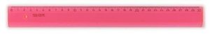 Pravítko 30 cm vyrobené z růžového průhledného polystyrenu.