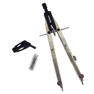 Kovové kružítko s držákem tuhy a univerzálním držákem vhodným pro tužku.