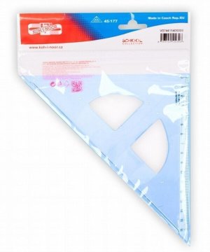 Trojúhelník 45/177 s kolmicí vyrobený z modrého průhledného polystyrenu.