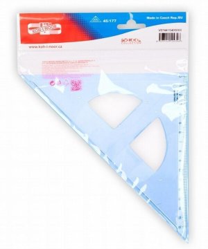 Trojúhelník 45/141 s kolmicí vyrobený z čirého průhledného polystyrenu.
