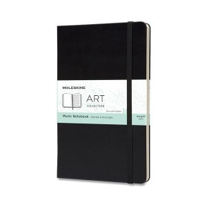 96 stran notového papíru. Zápisník má pevnou, ve hřbetu šitou vazbu v kartonových deskách.