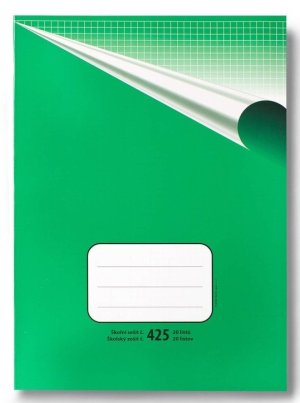 Klasický školní sešit číslo 425, formát A4, 20 listů, čtverečkovaný. br brŠkolní sešity mají pevnou papírovou obálku v klasickém retro designu.