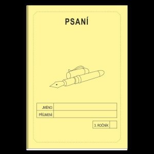 Školní sešit obsahuje stránky s řádky určené pro opisy, přepisy a diktáty.