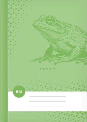 Školní linkovaný sešit ve formátu A5, v zelené barvě, s motivem žáby, v deskách z křídového papíru.