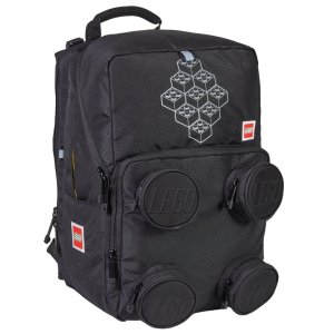 Školní taška Petersen vyniká přední kapsou ve tvaru zmenšené LEGO kostky 2x2.
