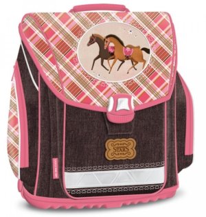 Školní aktovka Ars Una z kolekce Charming Stars Koně, která je určena pro děti ve věku 6-10 let, tedy prvního stupně základní školy.