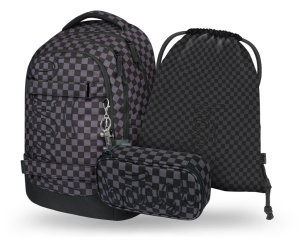 Školní set obsahuje aktovku, sáček na cvičky a jednopatrový penál se 2 chlopněmi bez náplně.