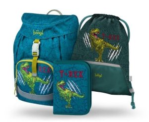 Školní set pro prvňáčka s motivem dinosaura T-rexe.