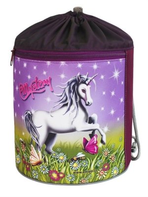 • Sáček na cvičky nebo přezůvky z pevného omyvatelného materiálu. • Zdrhování pomocí pevných tkanic, které zároveň umožňují nošení na zádech.