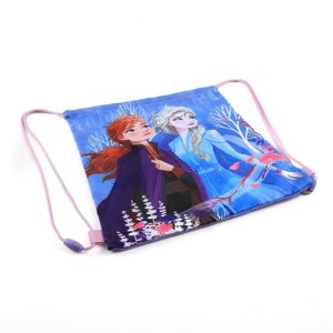 Malý sáček na přezůvky či cvičební úbor, motiv animované duologie Ledové království (Frozen), design s hlavními hrdinkami Elsou a Annou, uzavírání jednoduchým stažením šňůrek, nízká hmotnost.