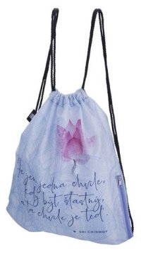 • Sáček na cvičky nebo přezůvky z pevného omyvatelného materiálu. • Zdrhování pomocí pevných tkanic, které zároveň umožňují nošení na zádech.