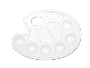 Bílá malířská paleta s 6-ti miskami pro barvy a 4 miskami pro míchání barev.