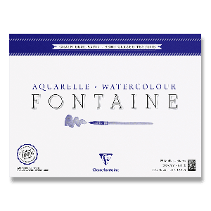 Akvarelový blok Clairefontaine Fontaine Semi Glazed s rozměry 30 x 40 cm má 100% bavlněný papír, který má téměř hladký povrch a neklouže.