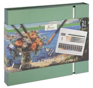 Krásné dárkové balení obsahuje vše potřebné pro malování akrylovou technikou.