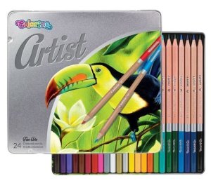 Souprava 12 kusů vysoce kvalitních profesionálních dřevěných pastelek v odolné plechové krabičce.