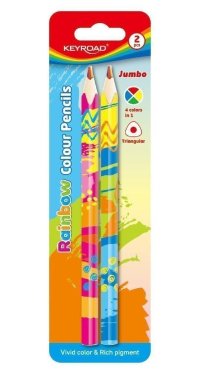 Trojhranné jumbo pastelky Magic s čtyřbarevným jádrem – obsahující 4 odstíny barev v jedné tuze (modrá, červená, žlutá a zelená).