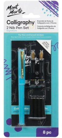 Kaligrafické pero s doplňky - 1 kaligrafické pero, 2 kaligrafické hroty s gumovými úchyty (tenký a široký), 4 bombičky s černým inkoustem a návod s cvičnými listy.