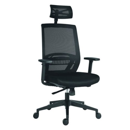Moderně designovaná kancelářská židle se síťovinou na opěradle a opěrce hlavy