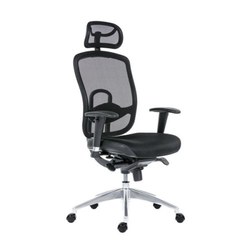Netradiční provedení kancelářské židle se síťovinou na opěradle a opěrce hlavy Synchronní mechanismus s několikanásobnou aretací a nastavením síly protiváhy Výškově a do šířky nastavitelné područky s …