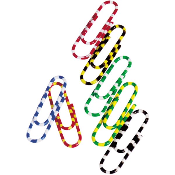 Kancelářské sponky v plastové krabičce Délka: 28 mm Balení: 100 ks Provedení: zebra Mix barev