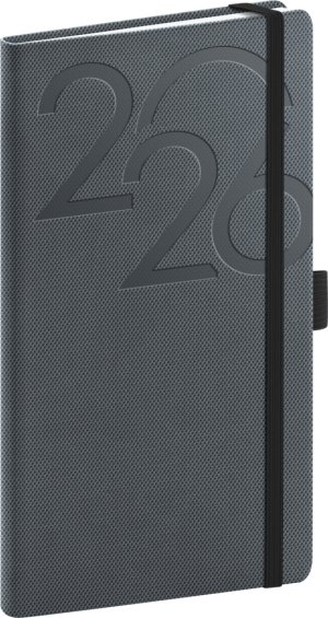 Kapesní diář Ajax 2026 v černé barvě. Jemně strukturovaný povrch s atypickým reliéfem je vhodný pro všechny typy ražeb. Diář má zakulacené rohy, poutko na tužku a elastickou gumičku. Týdenní rozvrh s česko-slovenským kalendáriem a doplňkovou angličtinou, němčinou, maďarštinou a ruštinou.
